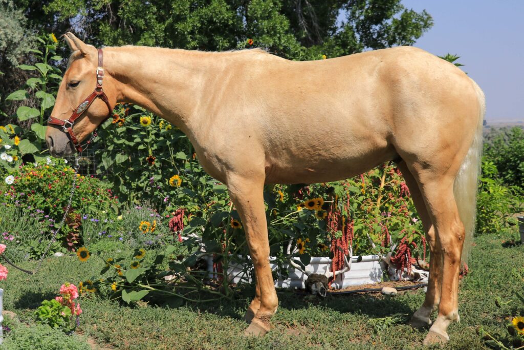 Wrangler is a beautiful palomino gelding. He stands 15 h.h. He has been ridden outside in the rocky hills, across lush green pivots, and in the high country. We have used him doing all the general ranch chores. Wrangler is handy in the arena. He has a huge stop, spins, side passes, backs up, lopes around nice and low headed. Stands good to shoe, bathe, saddle, mount, etc. Wrangler is good in a pasture as well as a stall. He is an all around gelding with the experience of the ranch, arena, and hunting camp. An own son of Doc Hollywoods Last with Doc Bar and Genuine Doc on his papers. 100% sound in every way, don’t miss out on this opportunity. FMI call Jonathan 307-217-1964.