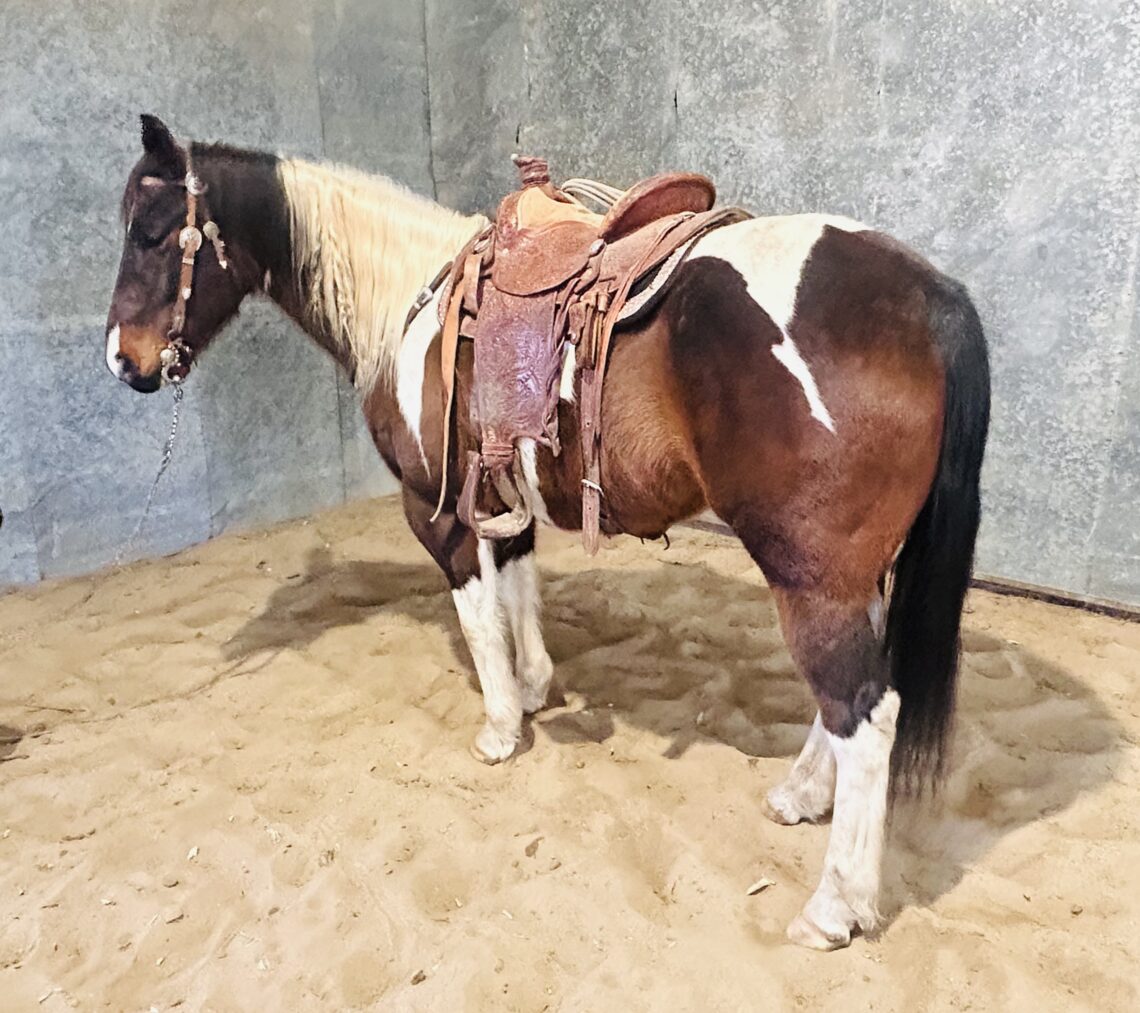 Checkers is the kind you drive many miles to find! Gentle, kind, willing, athletic, put together and look at his color!! He has been used in all aspects of ranch work and is broke nicely in the arena. He has been started on the Cowtrac flag and tracking cattle in the arena. He is the kind you can pull out of the pasture and trail ride and then take to a weekend sorting event! He’s sensible and safe and stands around 14.1 hands! FMI call 406-321-1414.