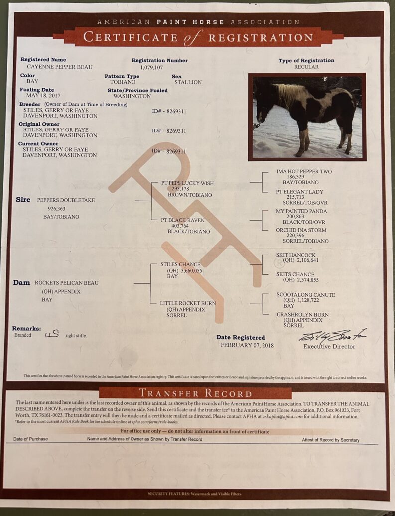Breed: APHA # 1,079,107 BAY TOBIANO GELDING 2017
