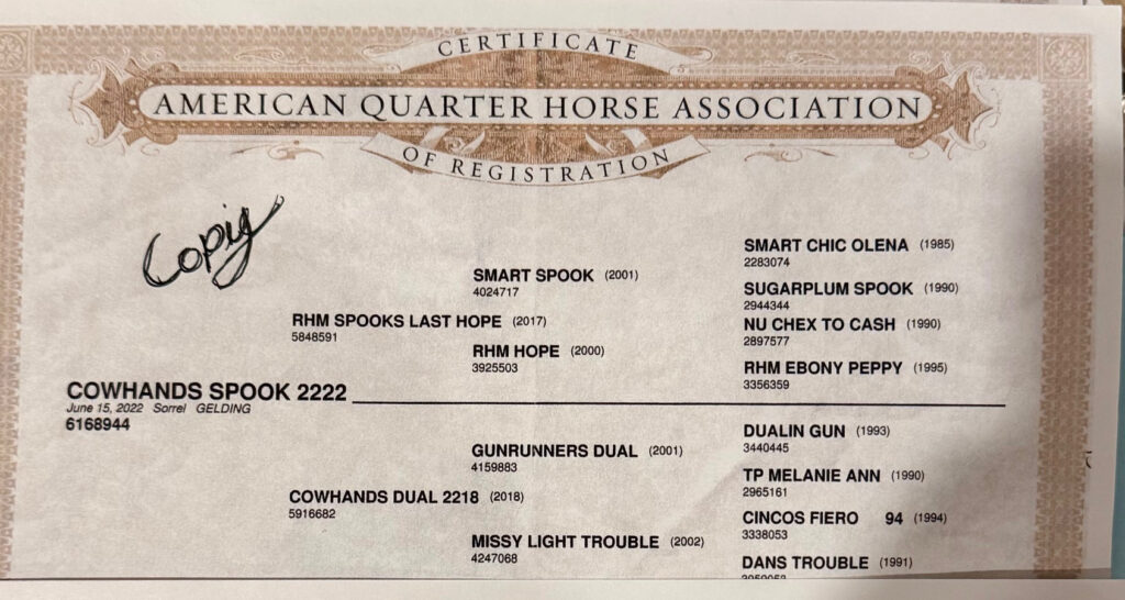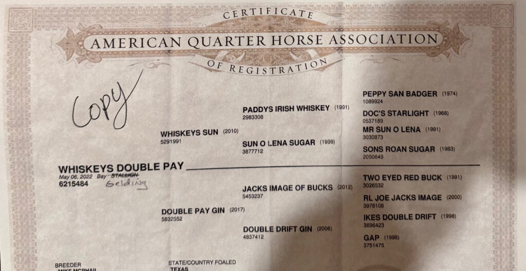 Breed: AQHA # 6215484 GELDING 2022