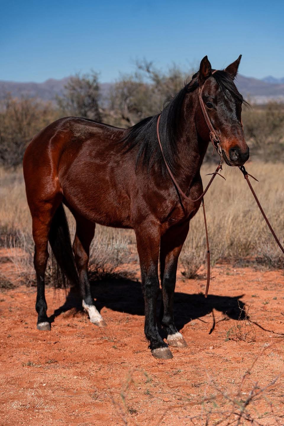 “Sully” is a coming 6 year old grade bay gelding. He stands right at 15.1 hh, he’s gentle, safe, and sound. Sully is best suited for an advanced beginner type rider or a confident 10/12 year old kids but is not a kid horse for someone just learning he is very responsive to your legs and light in the bridle. Sully has been used extensively on the ranch and on trails, he’s been used for all aspects of cow work, led 3-6 mule pack string in some of the roughest areas in southern Arizona. He’s good in the rocks and can go all day. We recently started him on the heel side casually and he shows good potential. Sully easily transitions between his ranch work and English riding, and is being started over low level jumps making him a very well rounded mount. He’s UTD on his shots/dental/feet. You can catch him anywhere you want to he stands tied, for the farrier, and to be tacked. He’s easy to load, hauls good and will ride out alone or with a group. Sully doesn’t mind a hard days work or time off he’s the same horse every time.