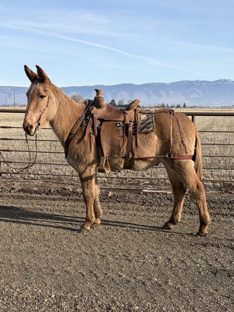 Gus is a super good built, nice mule who walks out nice. He’s been packed and rode in the mountains and is extremely easy to catch. He is easy to handle and gentle to be around. 100% sound. FMI call 208-413-2192.