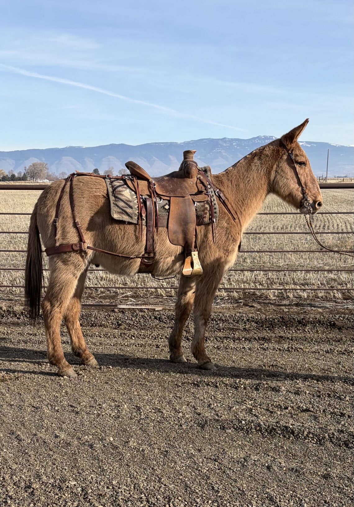 Reba is a super broke, nice mule, rides and packs. Good to catch, saddle, bridle and good with her ears. Will fit any level of rider or handler. Rides one handed and has extensively lead pack strings in the wilderness. FMI call 208-451-0840.