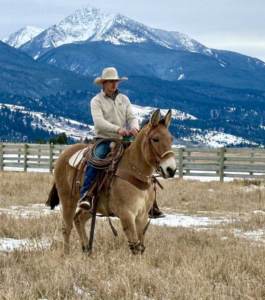 Rugged & Refined Working Mule, Meet Tommy Teeter, a flashy John mule with white socks. Built for the rimrock and seasoned in the tall timber, he is a powerhouse forged in big, rough country. He offers the perfect blend of mountain grit and trail mule handle. Tommy is a true working mule-honest, dependable, and ready to be hauled to the trailhead today.