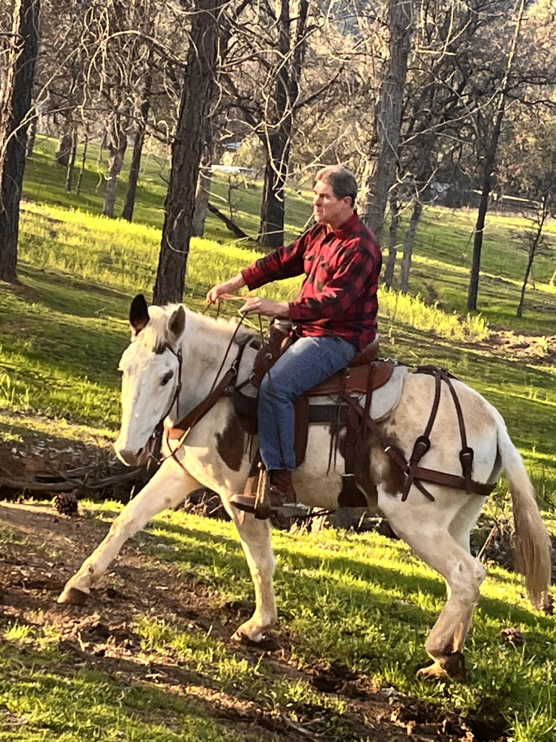 Dixie, a strikingly beautiful coming 7 years old this May, paint (white with rust spots) Molly mule standing 15.3 hands and built to impress and go the distance. This Molly is broke as they come. She can be ridden by beginner, intermediate, and advanced riders. She is extremely gentle. She has packed, been ridden in the mountains, cross water, bridges, parades, and over fallen trees. Whether you’re riding the ranch, hitting the trails or making your own trails, she is it! FMI call 530-949-9777.