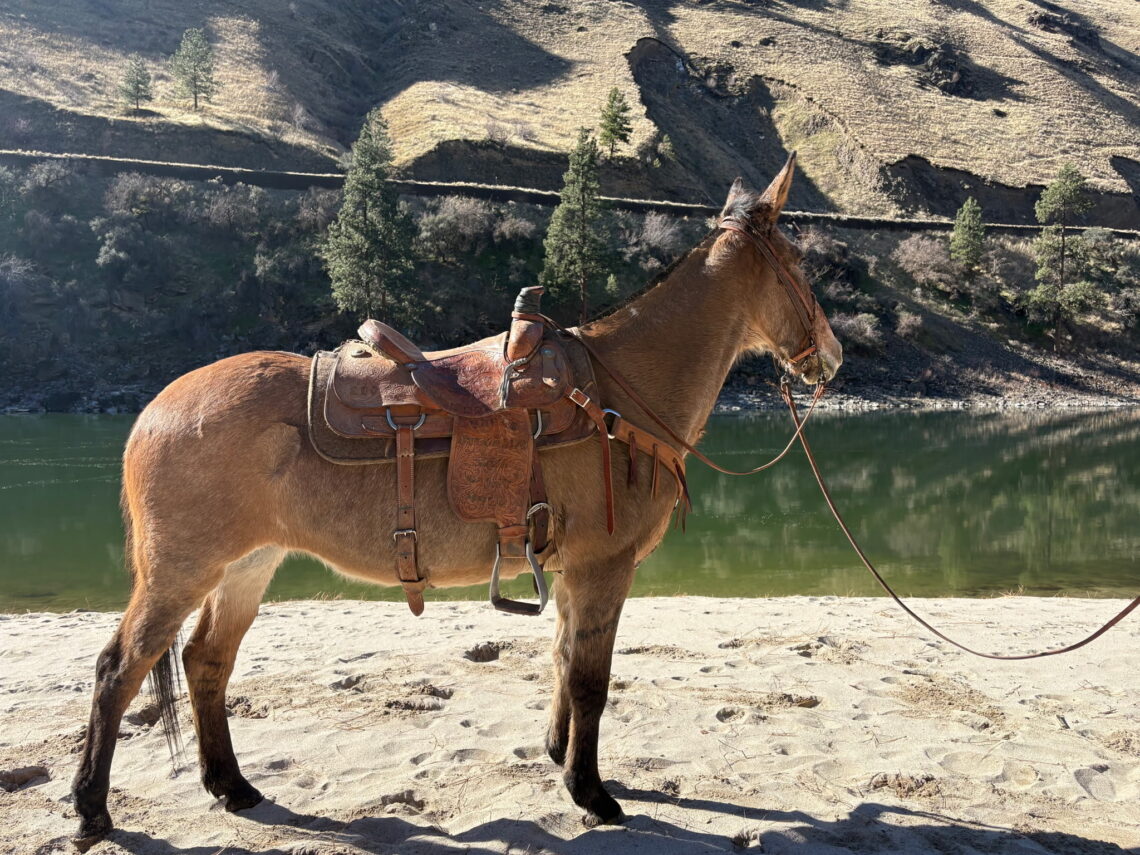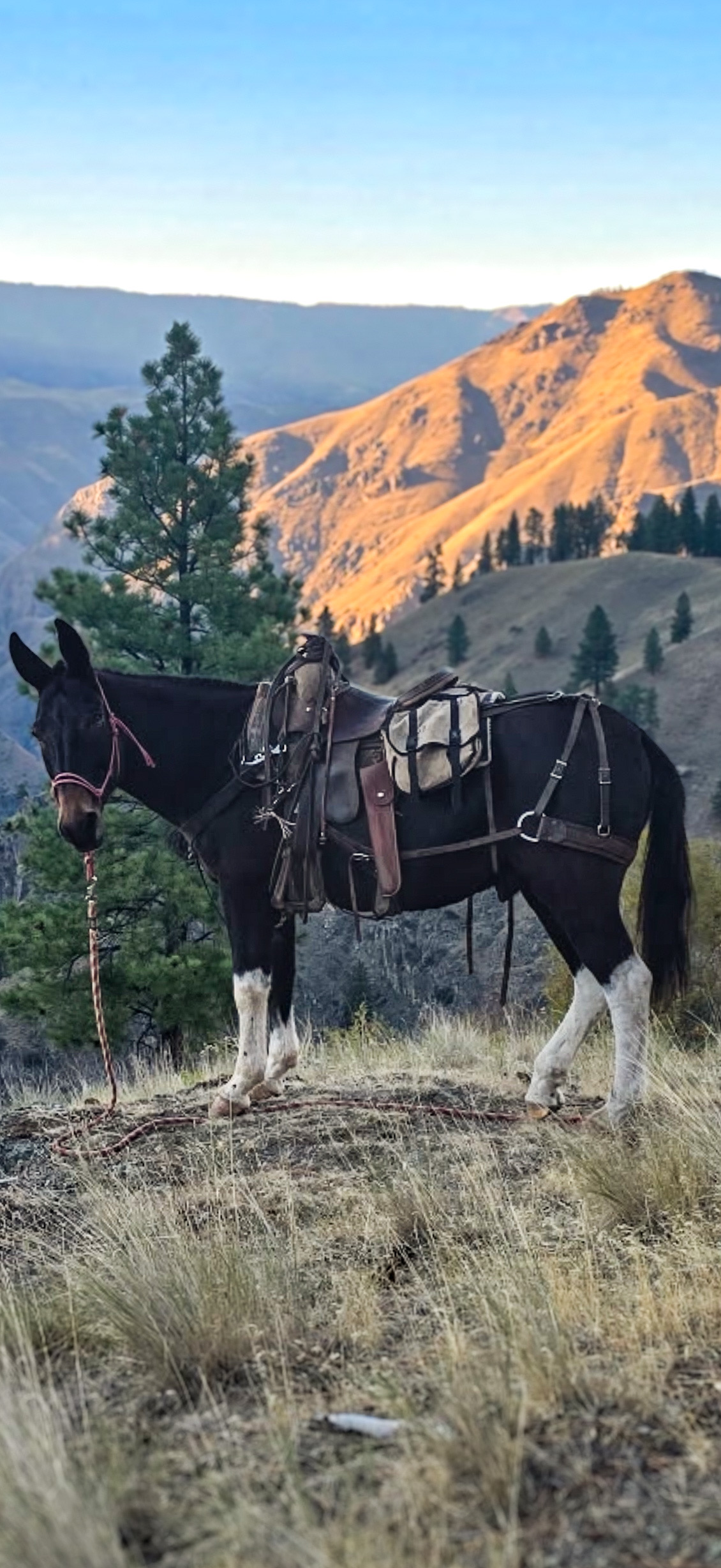 Toby is a 15.1 hand 1100 lb John mule with lots of color and lots of trail miles. He has been packed and ridden all over Hells Canyon and the Salmon River country. Super athletic, built right, friendly and tough as nails. He is gentle, has a great mind and is willing to do any job. He will go all day and then asks what’s next! No quit, no nonsense- just a dang good mule. FMI call 208-315-5172.