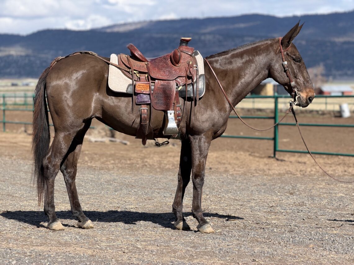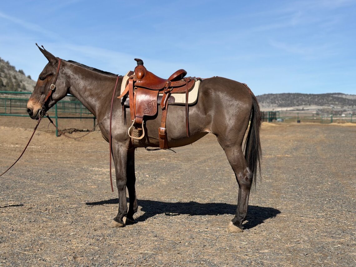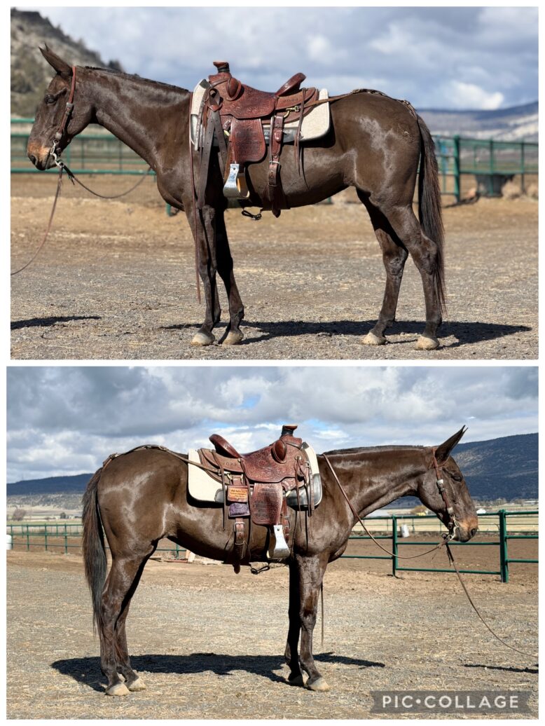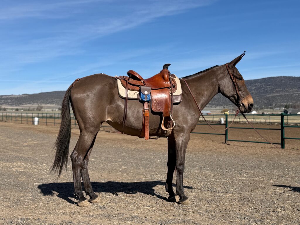 Outstanding, seasoned molly suitable for all riders! Big, smooth stride that covers ground and is easy to sit all day. Excellent neck rein, a lope to die for and a bold mindset makes her a standout! Packs and leads the string! Been to town and shown in a variety of events. Used around ranch and on cattle too. If you’re looking for an all around mule take a look at her! FMI call Katie at (573)881-4041
