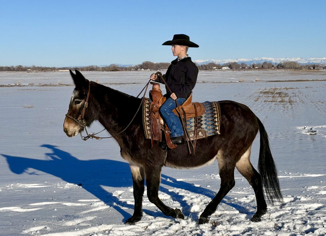 12yr old. 15.2h. Black John. Good to pack, ride and drive. Big Jake is as friendly as they come. He loves attention and is a smooth ride. He is absolutely safe and reliable no matter what you are doing with him. An awesome trail mule that can pack the biggest riders, and safe enough to throw the kids on. FMI 208-550-1571.This Mule Is In: BEST OF PEN CONTEST