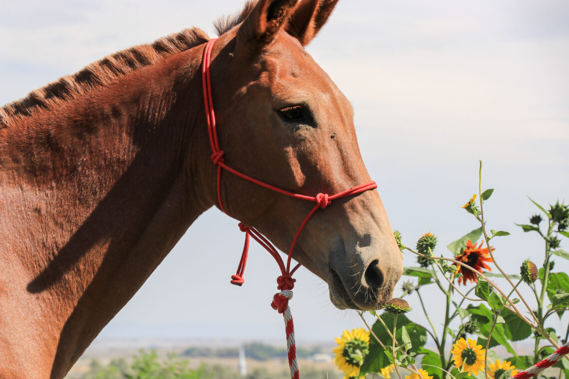 Standing a commanding 16 hands, 2 Story is a 16-year-old dun john mule that checks every