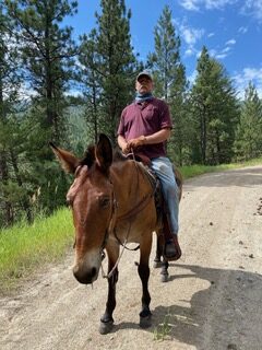 Mickey is a go to mule, he has been packed but mostly ridden. Big, gentle outside using mule. Crosses rivers, downfall, up and down ridges, logs, anything. A good mule and a fast walker FMI call Andy 208-899-9340.