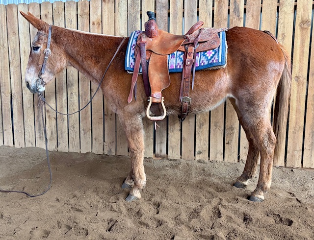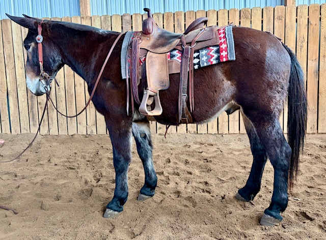 The Ultimate Mountain & Arena Molly Mule! If you are looking for a reliable, seasoned partner, look no further than Marcy Monroe. This 15-year-old Molly stands a stout 14.2 hands and is the definition of a beautiful lady. Marcy is a true veteran who is as comfortable in the arena as she is in the high country. In the arena, she is a dream to ride-soft in the bridle, moves off your leg, and lopes beautiful, correct circles. For those who enjoy a close connection, she also rides exceptionally well bareback, showing just how gentle and steady she is. When you head to the hills, Marcy truly shines. She has spent the majority of her time in the mountains, where she has been both ridden and packed. Whether you are navigating steep trails or packing gear, she is sure-footed and dependable. Best of all, Marcy is safe for any level of rider. From a beginner looking for a confidence builder to an experienced packer, she is ready to go to work for you. Don’t miss out on this fancy, versatile lady! FMI CALL 208-989-5851.