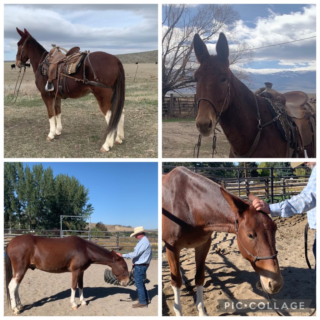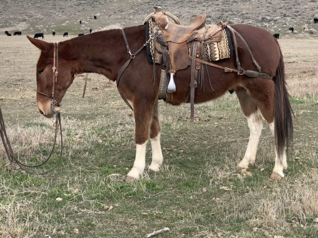 Socks is a really gentle, easy going, kind mule. She’s been packed. She is good with time off and is easy to catch. She has never bucked, super gentle and good to ride. 100% sound. FMI call 208- 413-2192.