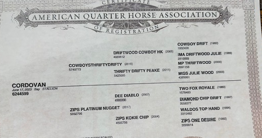 Breed: AQHA # 6244599 BAY GELDING 2023
