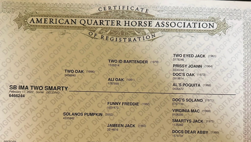 Breed: AQHA # 6466244 SORREL GELDING 2022