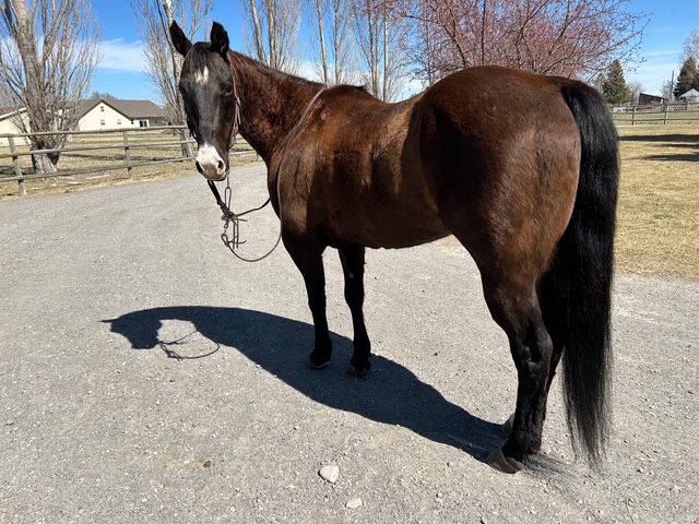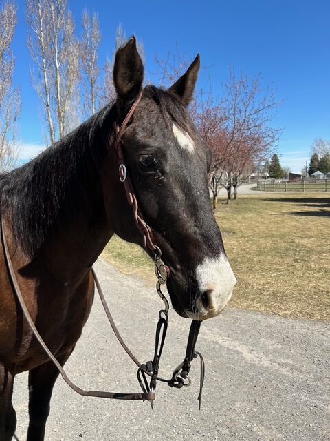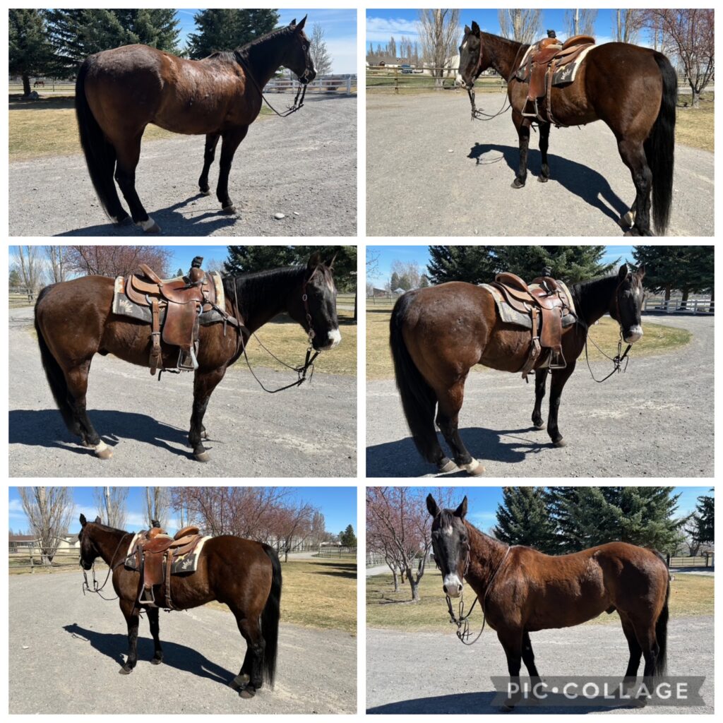 Tater is a 2014 AQHA black gelding that is the gentle, all-around type gelding that everybody’s looking for. He stands approximately 15.1 hands and weighs 1100 lbs. Tater is solid, safe and sound! Great to load, clip, shoe, and bathe. He has done all the ranch chores. Sorting, branding and doctoring. He is also an amazing switch-ender in the team roping arena that is a proven money winner on both ends. Tater is not only a great switch-ender, but he has also been to the National High School Rodeo Finals in the breakaway roping. Tater is gentle for anyone. He is a great horse to ride in the mountains, hills and arena. He goes through water and over trees. Tater has no buck in him and stays gentle even with time off. Tater has a beautiful, long, flowing mane and tail that drags the ground. You won’t want to miss out on this amazing gelding. Watch for him in the roping preview! Come ride him before the sale and take him for a test ride. We think you’ll like him as much as I do. FMI call Payson 208-614-9929