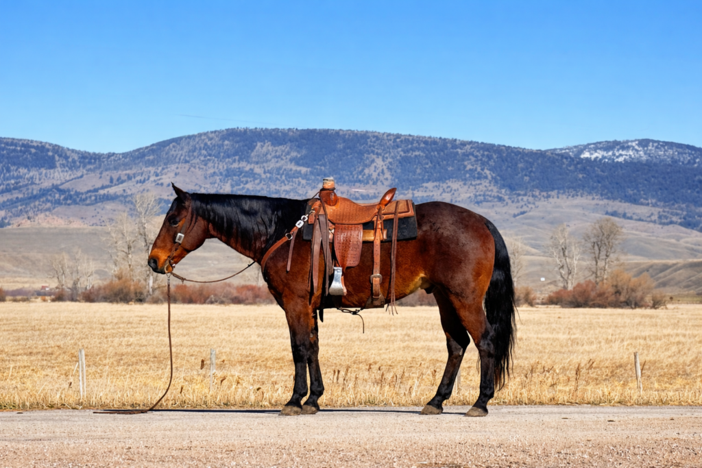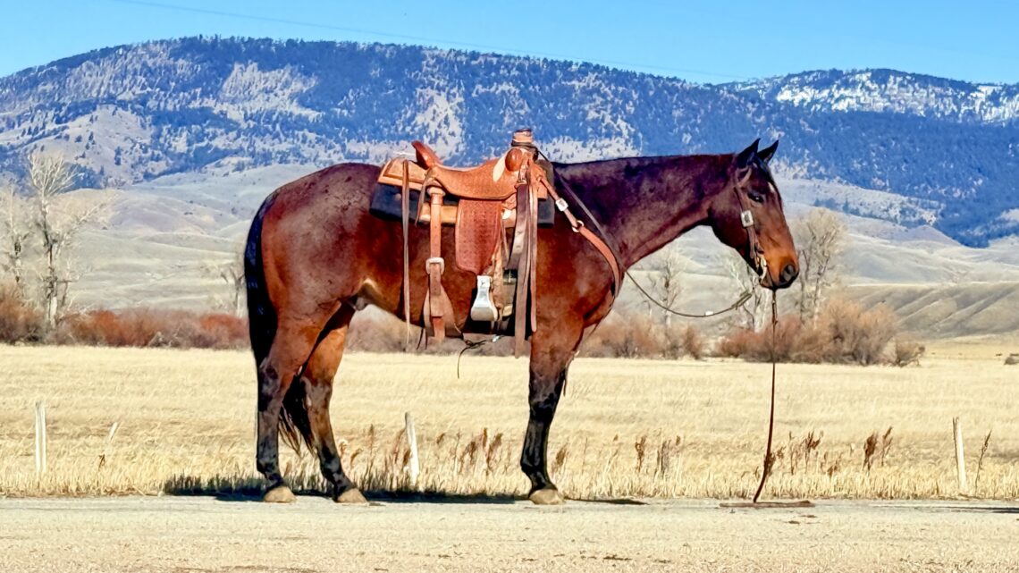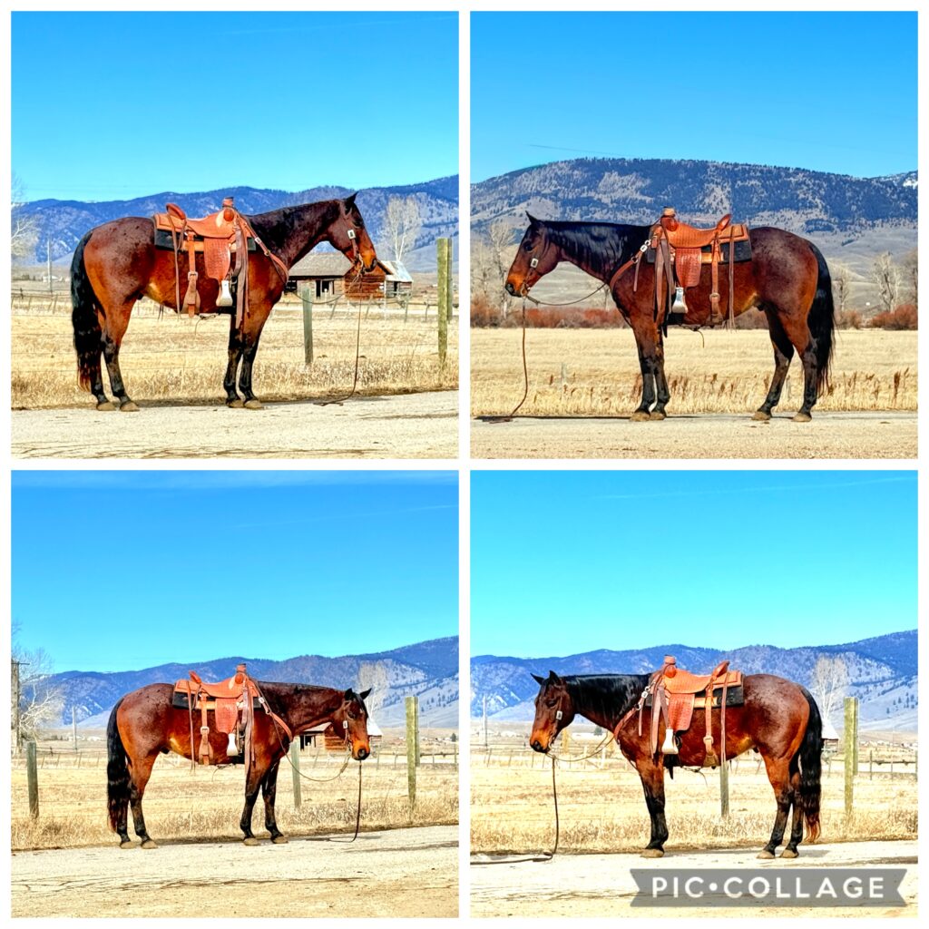 Dinero is a 12 yr old bay roan grade quarter horse gelding that stands 15 hands and is stout made. This is one very gentle and extra broke to ride finished Ranch horse gelding that the whole family can ride. He has done everything you can do on the ranch, including lots of Alley sorting, and will not let a cow get by him. He will work off your legs and is very handy. Really reads cattle well. Been roped off of and has doctored hundreds of them over his years. You can go down your rope to doctor and he’ll keep things tight. Great in the branding pen and always keeps his cool. Very gentle for most anybody that knows how to ride. He lopes pretty circles, easily picking up his leads. Will spin both directions correctly and has a big stop. This guy has also spent many miles trail riding and exploring the mountains. He is trained to side step up to a mounting block or fence and make it easier to get on. This is one of my favorite horses to get a job done on. He is definitely our go to guy when you’ve got a cow job that needs done. He has zero buck in him and can be laid off. Easy to catch and will step in the trailer, stand quiet, and back out like a gentleman. He has been to Ranch rodeos and team penning and sorting’s. He walks out well and is not spooky. Very confident and capable horse. He has no bad habits and is very quiet to be around on the ground. He is used to dogs and kids and the commotion of Ranch life. Traffic safe. This horse will be missed on our operation. He’s the kind anybody can get on and go do any job with style. He has a black leg and hoof on every corner and is a very handsome guy. If you’re looking for a no nonsense special one, check out Dinero. Guaranteed sound. Give us a call and try him before the sale. For more info call Tom 406-544-9987 Or check him out on our website. https://flintcreekquarterhorses.com/horses-for-sale
