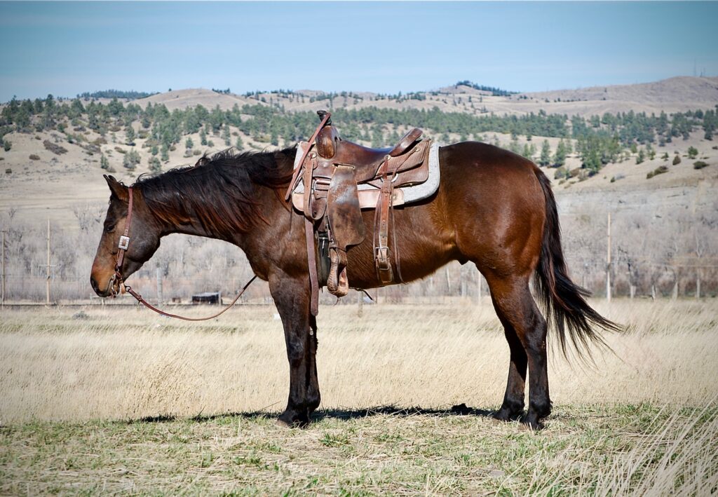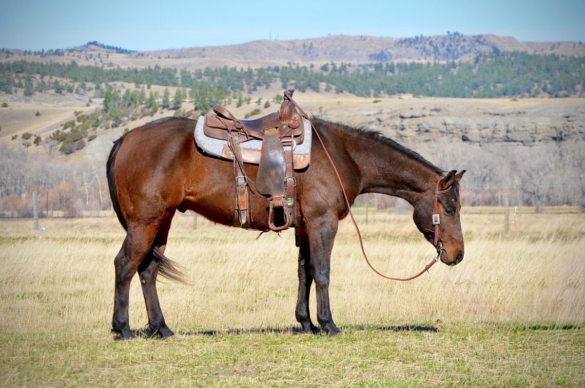 “Joe” has a great handle on him and has been used extensively around the ranch! He’s one that always meet you at the gate and is happy to go to work! He has a roughly 90 days of riding on him. He has tracked the heel o matic in the arena and doctored some cattle outside! A few of our young interns have used him to guided rides and to do the ranch chores! Ready to go in any direction. He stands around 14.2 hands.FMI call 406-321-1414