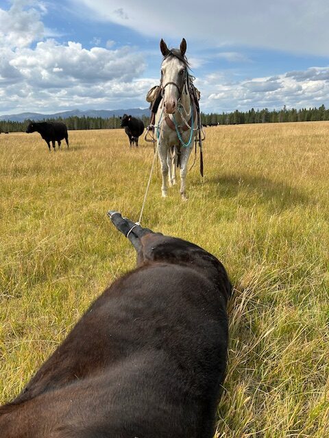 Hancock has been a barn favorite. He’s got a unique color that catches the eye. He is a gentleman to be around and greets you at the gate. This Horse has been cowboyed on most of his life. He has doctored everything from bulls to baby calves. I’ve solo doctored more calves and yearlings than I count and he handles them all with ease. He’s done everything ranch related from sorting out heavy cows, pairs, and bulls to trailing wild cows through the thick timber in the mountains and baby calves through the tall, thick sagebrush on the desert. He’s not only handy on the ranch, but he’s one that in a very short time you can take to town and win some money heeling on. He’s got a really good start on the heeling side and gets better and better every time he backs into the box. He’s the type of horse we can put everyone on, he’s handy enough to get any job done, but gentle enough to put the kids on and go for a ride with the whole family. He’s a dang good horse and would make a great addition to any barn. Her stands at 14.3 hands and weighs about 1100 lbs. He’s got great ground manners and is good with his feet. No kick, bite, or buck. FMI call or text Skylar at 208-912-2294