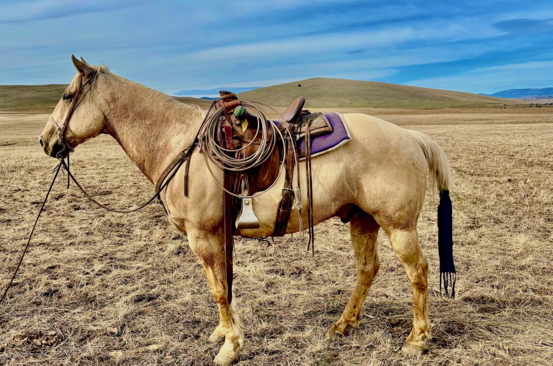 Cisco is a big, gentle palomino gelding we’ve owned since he was a three-year-old. He stands a solid 15.2 hands, wears size-one shoes all the way around, and weighs about 1,300 pounds. Cisco has been used in every aspect of ranch work—calving, doctoring, sorting, and trailing cattle to mountain pasture. He has also been used as a pack horse in the high country. He rides with a nice, one hand neck rein and carries a smooth, easy walk. Cisco has been roped off both in the branding pen and outside, and he handles it all without issue. Our 13-year-old nephew even learned to ride and rope on him. You can turn Cisco out for long stretches, and he’ll come back the same steady, good minded horse every time. FMI call Rhett 406-560-0590.