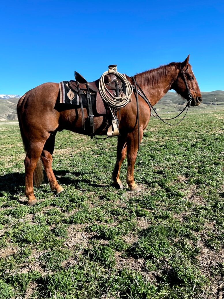 Spot is a 18 year old AQHA gelding standing 15 hands tall with a good and a strong work ethic. He enjoys having a job and has been used extensively for gathering cattle and general ranch work. He has been ridden many miles outside and is equally comfortable working in the arena. Spot is versatile and ready to go in any direction you’d like to take him. Whether you’re looking for a dependable ranch horse, a solid arena partner, or an sll-around using horse, he has the foundation to fit the bill. He loads and unloads quietly in the trailer, stands well for saddling and the farrier, and is easy to handle in every way. Spot has never offered to buck or get over excited. He has plenty of go when asked, a decent stop, a soft mouth and is responsive to leg cues. He crosses water and obstacles confidently and takes new surroundings in stride. Spot truly works hard to please and is the kind of gelding that aims to be a dependable partner every ride. I know he will make someone a great mount! FMI call 208-993-0321.