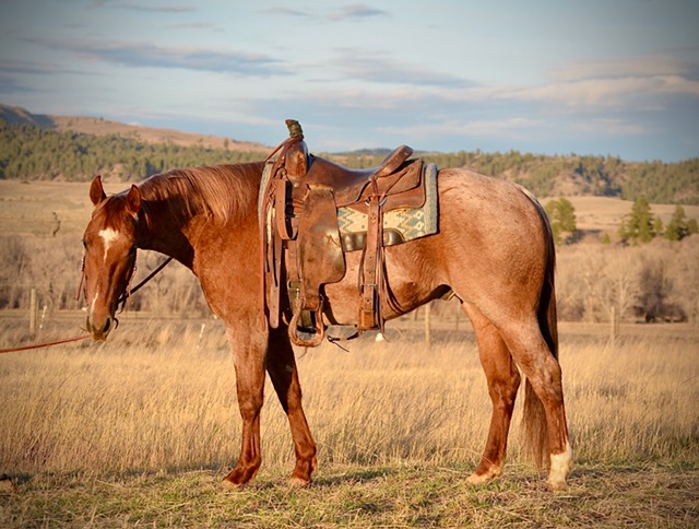 Chance is a gorgeous red roan four year old gelding! This talented gelding has been used in most aspects of ranch work. He’s been rode extensively by young teenagers outside gathering cattle and checking miles of fence.