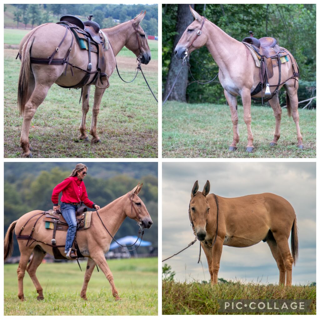 moment he steps out of the trailer. This mule has a golden temperament to match his size. 2 Story will meet you at the gate, follow you anywhere in the pasture, and genuinely enjoys being around his people. He is unfazed by noise, traffic, or chaos, making him a confidence-builder for any rider.