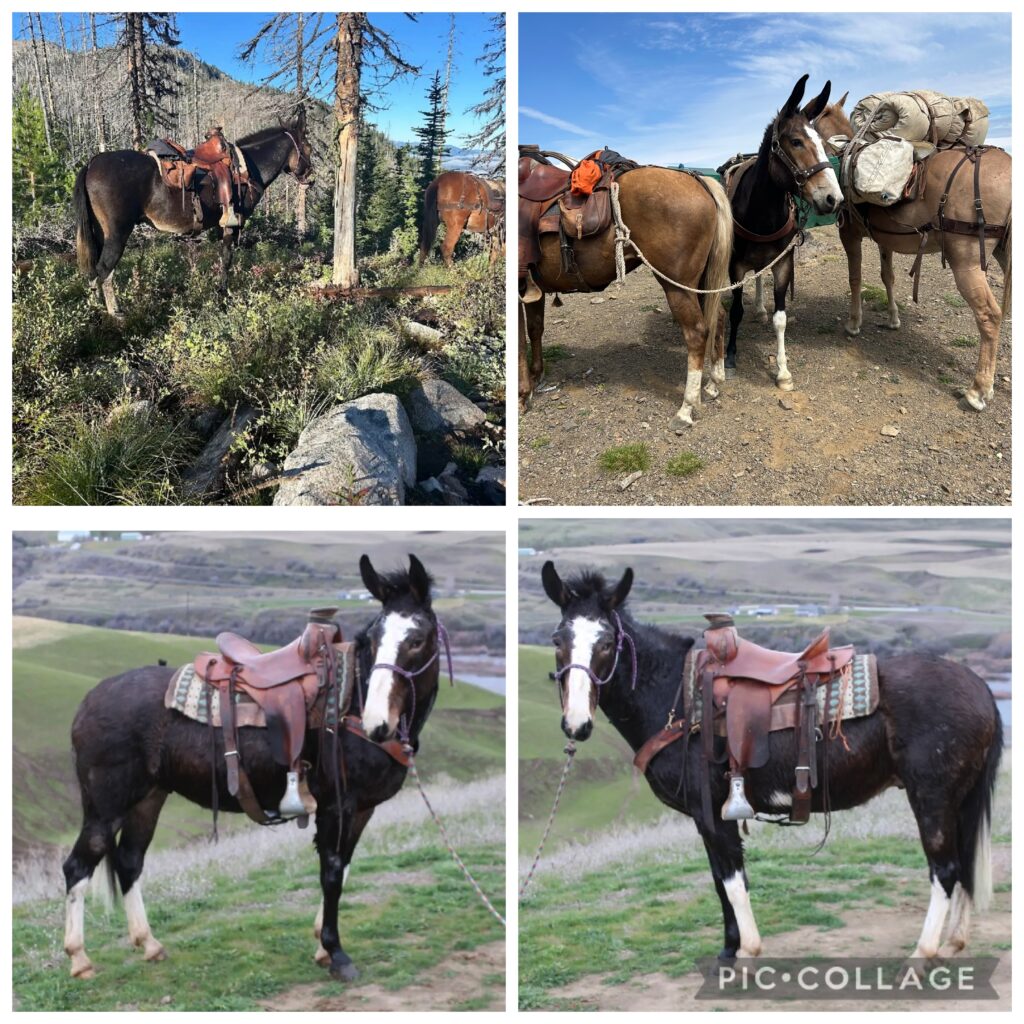 Max is an exceptional, seasoned 11-year-old John mule with extensive mountain and outfitting experience. Used for trail riding, packing, and as a dependable dude mule. He will lead the string or follow, goes anywhere in the line, and crosses bridges confidently. Safe, gentle, and consistent–suitable for kids yet stout enough for adults. Handles steep, rocky terrain, deadfall, water crossings, and traffic without hesitation. Ridden and packed regularly with no buck, rear, or bad habits. Stands tied, loads, clips, and handles correctly. Sound with strong feet and good bones. Easy keeper, low maintenance, and dependable even after time off. This is a mule you can put inexperienced riders on and trust in real mountain country. Hard to find this level of experience and reliability. Ideal for outfitters, guest ranches, or anyone looking for a true top-end, proven mule. FMI call 208-305-7676