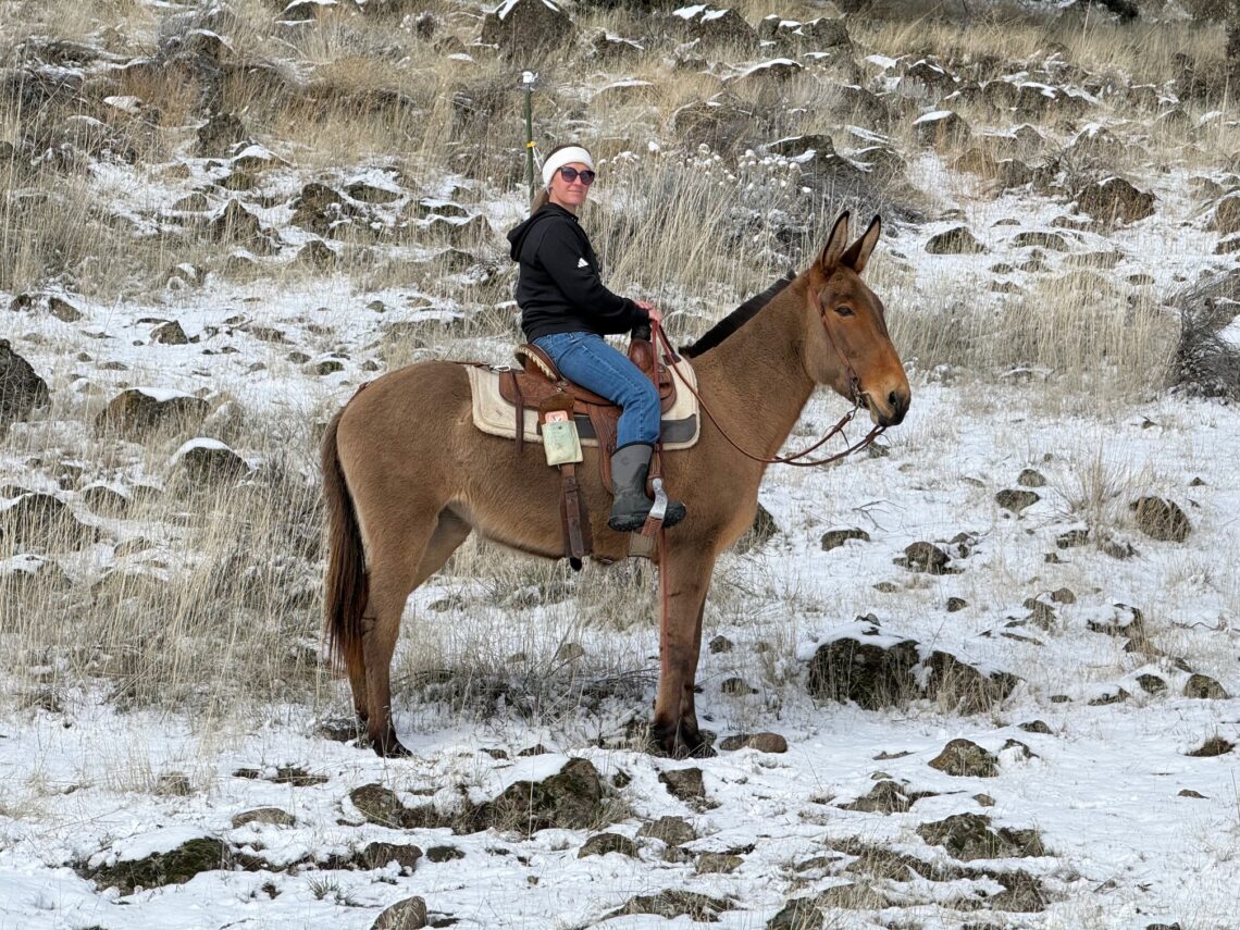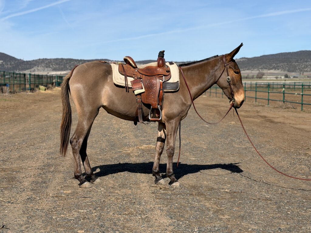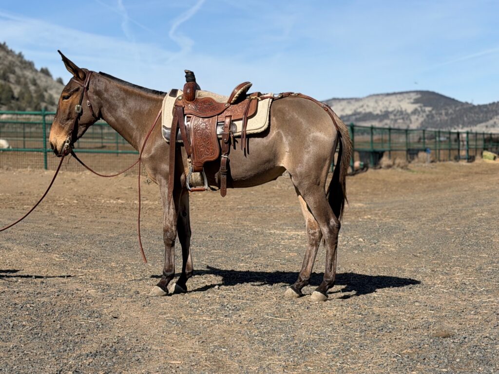Outstanding young molly with an excellent start. The best mind and disposition and a big future ahead of her! This beautiful gal trail rides well, has a nice start in the arena, packs and is broke to gunfire, whips and will ride bareback and double. Sundae is something you can plan to enjoy the next 20 + years! FMI call Katie 573-881-4041